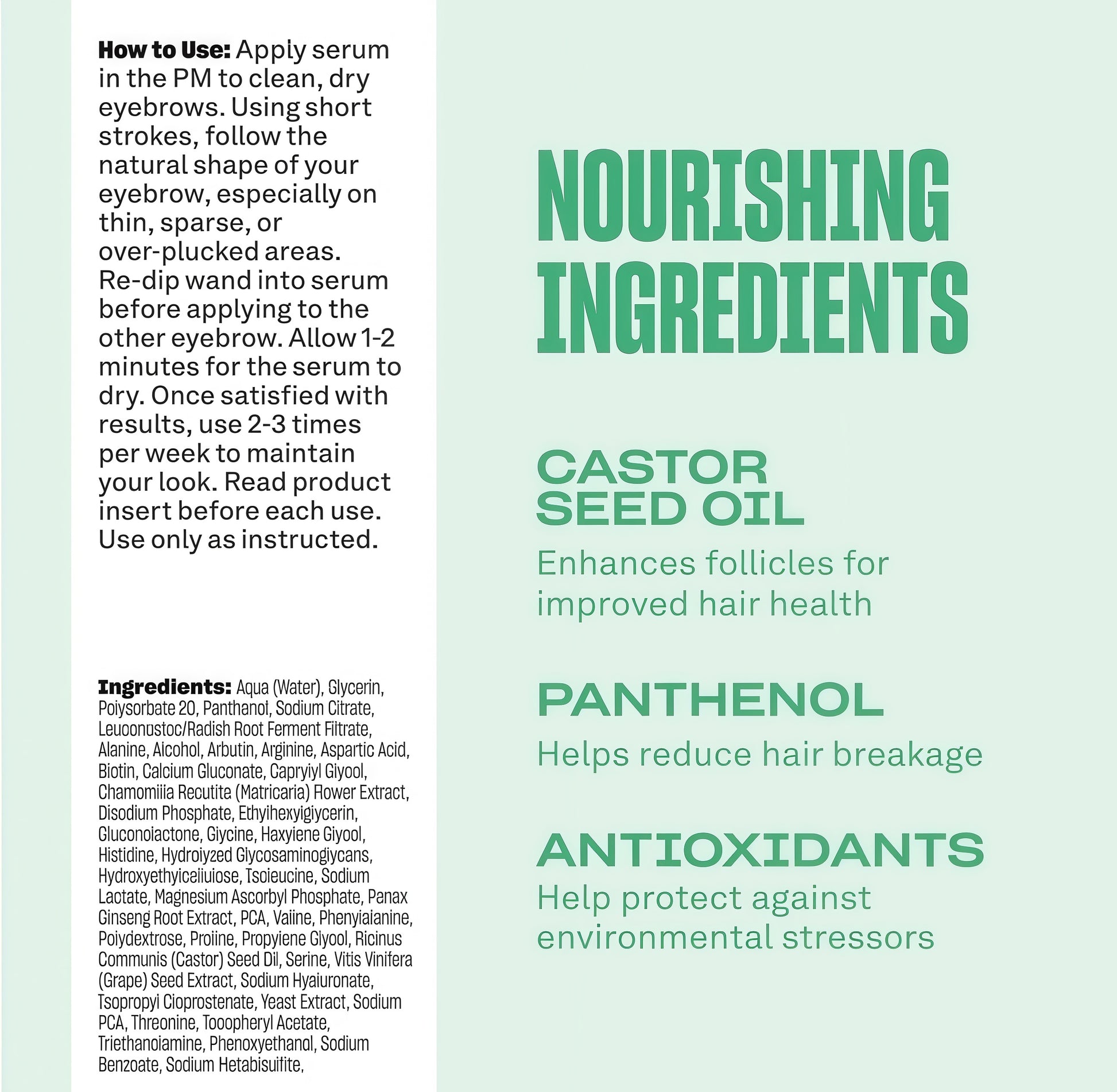 Use brow serum every night as one of the steps in your nighttime routine. Allow 2-3 minutes for the serum to dry before applying skincare, makeup, touching your eyes, or laying down.